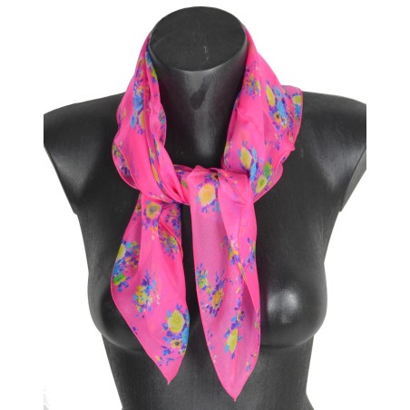 Carré en mousseline de soie "Bouquet" rose, 65x65 cm, fabriqué en France