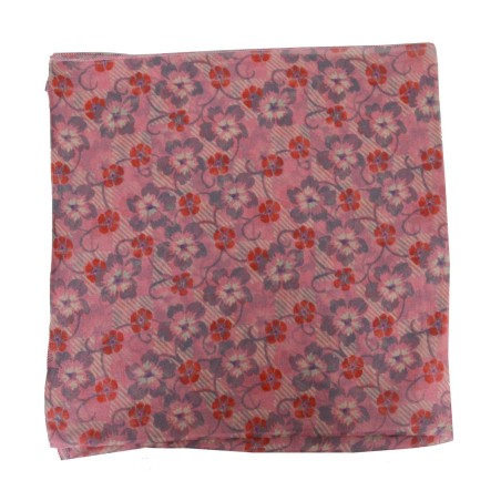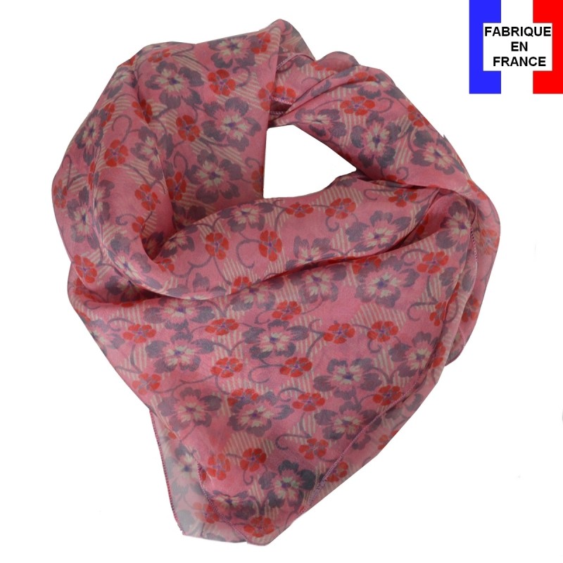 Carré en mousseline de soie "Flowers" rose, 65x65 cm, fabriqué en France