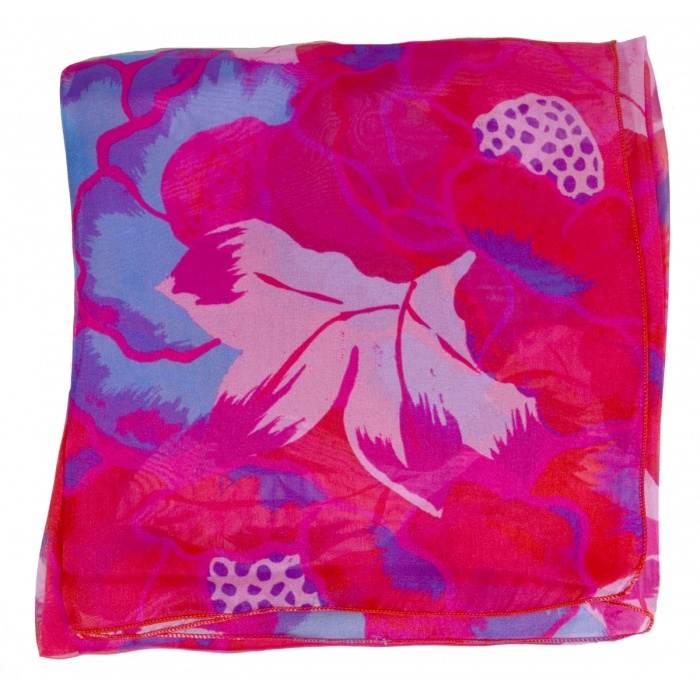 Carré en mousseline de soie "Pivoine" rouge, 65x65 cm, fabriqué en France