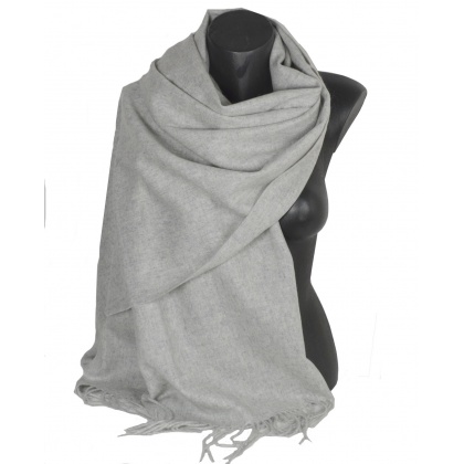 Châle épais en 100% cachemire de Mongolie, gris souris à longues franges