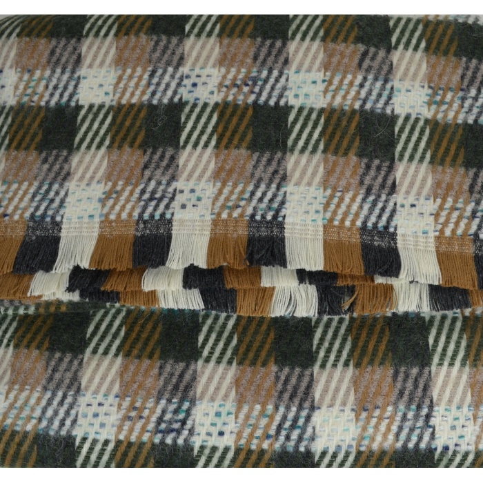 Châle doux en acrylique et laine, écossais kaki marron, fabriqué en France