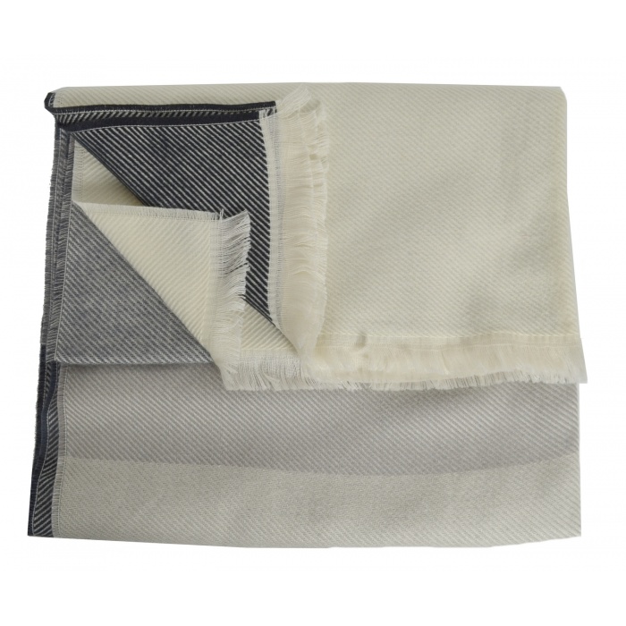 Châle fin et léger en 100% coton bio, gris et beige, fabriqué en France