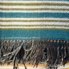 Châle chaud et épais en 100% acrylique à franges longue, vert à rayures, fabriqué en France