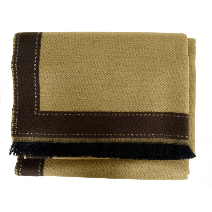 Châle très chic, beige avec bordure marron et fils métallisés, fabriqué en France