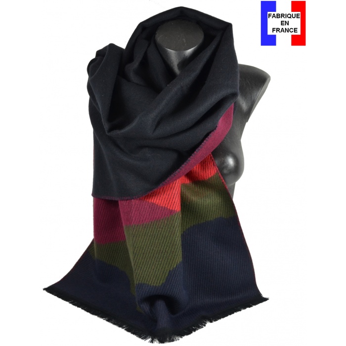Châle épais et doux en laine et acrylique, bleu et rouge, fabriqué en France