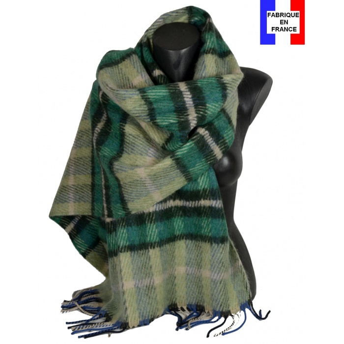 Châle en acrylique et mohair, écossais vert, fabriqué en France