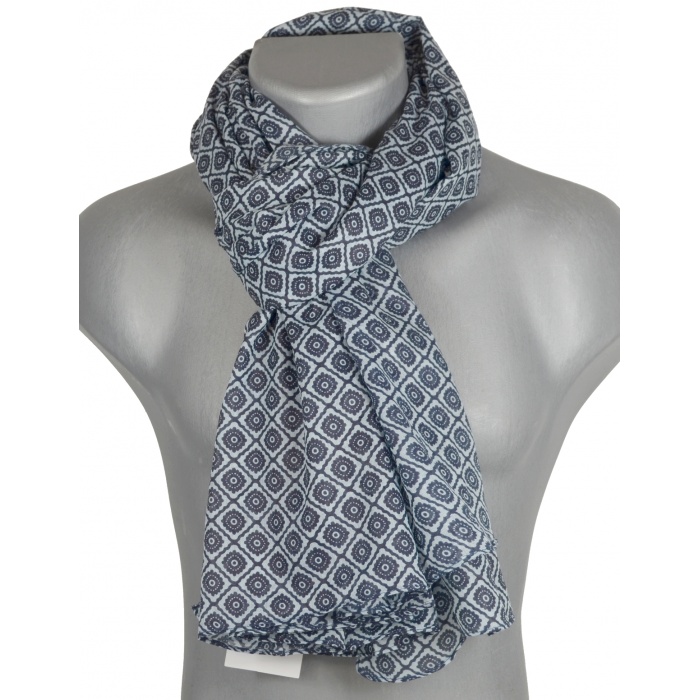 Chèche homme 100x180 cm blanc imprimé losanges bleus, en 100% coton