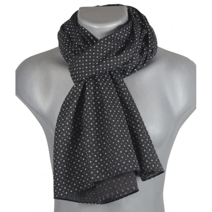 Chèche homme 100x180 cm petits carrés de points sur fond noir, en 100% coton