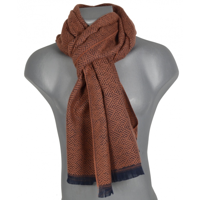 Cheche homme en 100% coton bio, 45x200 cm, marron et noir motif zig zag , fabriqué en France