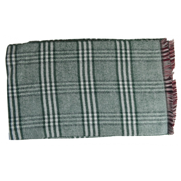 Écharpe homme, petites franges, écossais vert et blanc, fabriquée en France