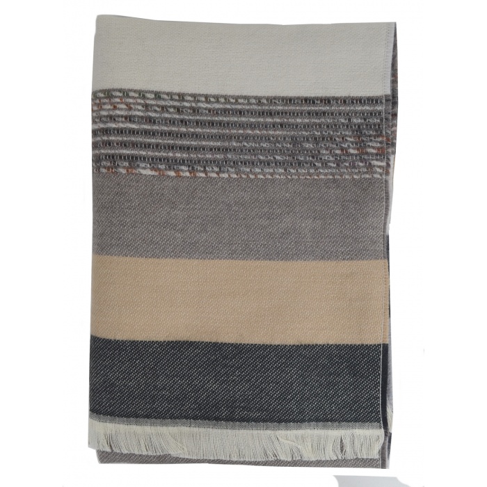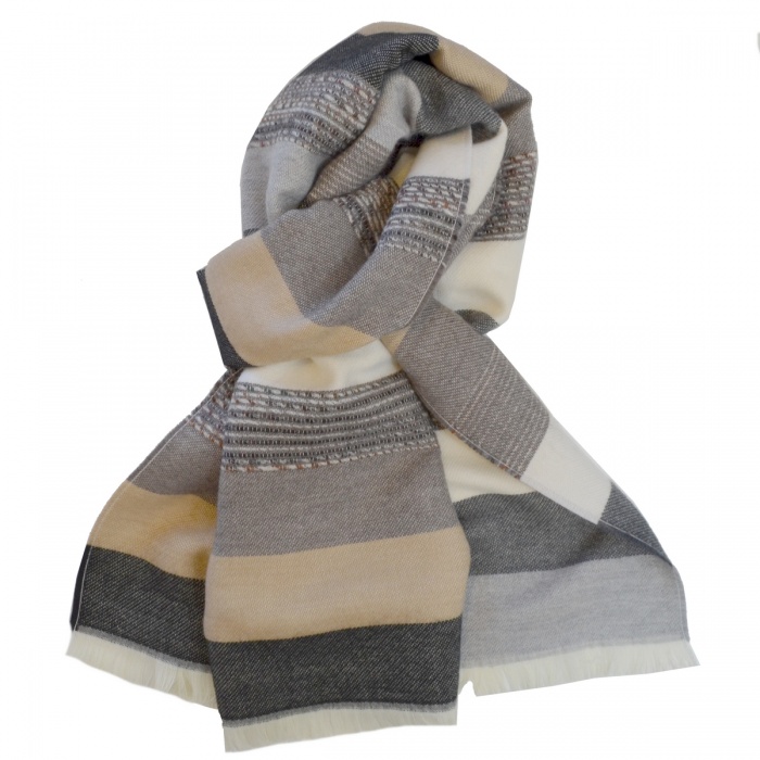 Écharpe homme très douce en laine mérinos et coton bio, beige et gris, fabriquée en France