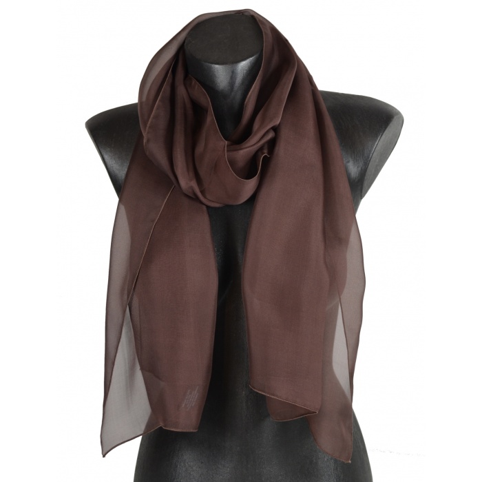 Foulard en mousseline de soie marron, 40x160 cm, fabriqué en France
