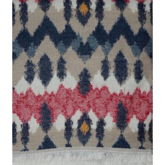 Poncho léger mais chaud, en acrylique, beige et rouge, fabriqué en France