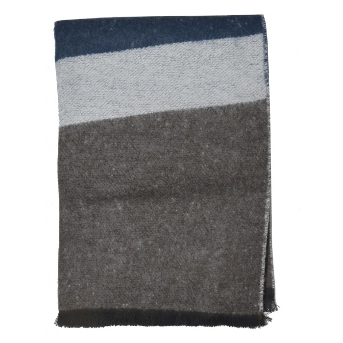 Poncho chaud et doux en acrylique et laine, bleu et beige, fabriqué en France