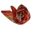 Très grand carré en satin de soie, orange motif paisley, ourlé à la main
